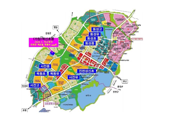 이로써 (가칭)혁신초‧중학교는 충북혁신도시 및 인근 개발에 따라 충북혁신도시 내 14,468.9㎡부지에 42학급(유 3, 초 18, 중 18, 특수 3), 학생 993명(유 57, 초 450, 중 486)의 규모로 설립될 예정이다.