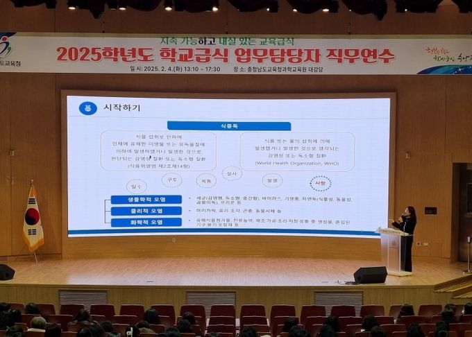 (아름다운교육신문) 충남교육청은 2월 4일과 6일 이틀에 걸쳐 충청남도교육청과학교육원 대강당에서 ‘2025년 상반기 학교급식 관계자 직무연수’를 개최하여, 2025학년도 학교급식의 전반적인 정책설명과 급식 우수 사례를 공유하는 자리를 마련했다고 밝혔다.