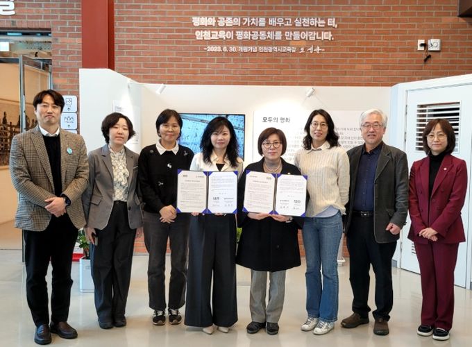 (아름다운교육신문) 인천광역시교육청난정평화교육원은 14일, 평화교육 전문기관 사단법인피스모모(대표 문아영)와‘평화교육 협력 체계 구축을 위한 업무협약(MOU)’을 체결했다.