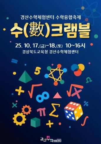 (아름다운교육신문) 경상북도교육청 경산수학체험센터는 오는 10월 17일부터 18일까지 이틀간 수학 융합 축제 ‘수(數)크램블’을 개최한다.