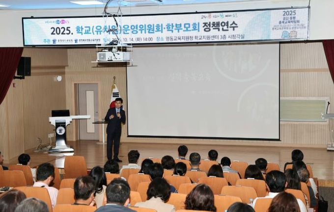 (아름다운교육신문) 충청북도영동교육지원청은 14일 영동교육지원청 학교지원센터 3층 시청각실에서 관내 유·초·중·고등학교 운영위원, 학부모회 임원, 학교(원)장, 행정실장 120여 명을 대상으로 2025. 학교(유치원)운영위원회·학부모회 정책연수를 실시했다.