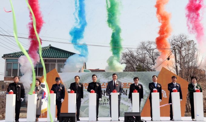 도는 5일 공주시 동현동 일원에서 전형식 도 정무부지사와 한상배 한국식품안전관리인증원장, 이종규 한국쌀가공식품협회 상임부회장, 최원철 공주시장 등이 참석한 가운데 ‘공주 동현지구 스마트 창조도시 조성사업’ 착공식을 개최했다.