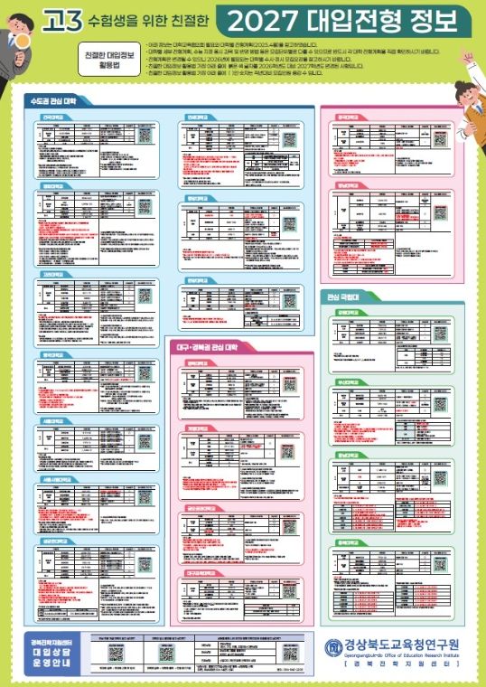 또한 ‘2027 대학 진학 정보’ 동영상은 경상북도교육청 공식 유튜브 채널 ‘맛쿨멋쿨TV’에 탑재해 학생과 학부모가 언제든지 시청할 수 있도록 했다.