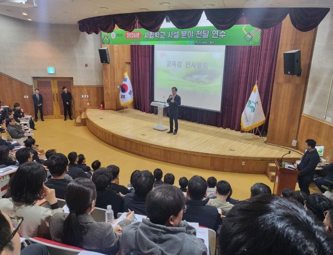 (아름다운교육신문) 경북교육청은 13일 경산시에 있는 경산교육지원청 본관 1층 강당에서 도내 사립 초․중․고․특수학교 행정실장 170여 명을 대상으로 ‘2026년 사립학교 시설 분야 전달 연수’를 개최했다고 밝혔다.