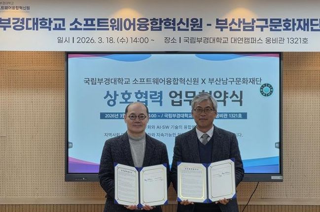 (아름다운교육신문) 부산남구문화재단과 국립부경대학교 소프트웨어융합혁신원은 지역사회 기반의 문화·예술·기술 융합 프로젝트를 공동 추진하고, 디지털 역량 강화를 위한 인공지능(AI)·소프트웨어(SW) 교육 제공 등 지속 가능한 협력 모델을 구축하기 위해 업무협약(MOU)을 체결했다.