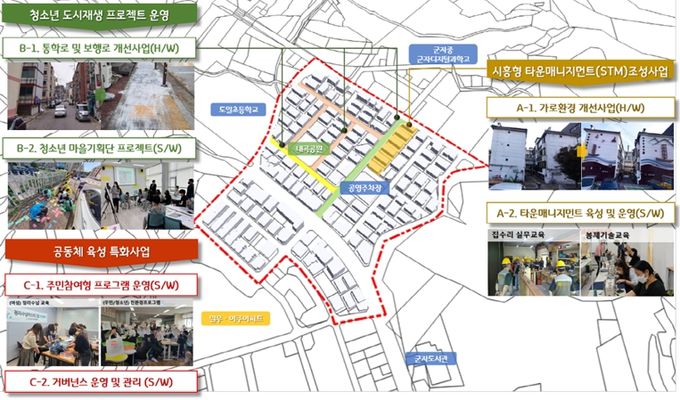 시흥시는 군자동 내곡공원 일대에서 2025년부터 2026년까지 2년간 총사업비 7억 6천만 원을 투입해 다양한 사업을 진행할 예정이다. 주요 사업으로는 ▲시흥형 타운매니지먼트 조성사업(STM) ▲청소년 도시재생 프로젝트 운영 ▲거버넌스 활성화 지원사업 등을 운영한다. 이를 통해 주민 중심의 도시재생을 실현하고, 거주환경 만족도를 높이며, 주민 중심의 마을관리 추진을 통해 시흥시 대표 원도심에 활력을 불어넣을 것으로 기대된다.