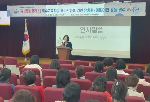 경남교육청은 유보통합이 지향하는 유아교육·보육의 질을 높이기 위해 유치원 교원과 어린이집 보육 교직원을 대상으로 4대 분야*에 대한 연수를 진행하고 있다. 이번에는 특수교육 대상‧장애 영유아를 담당하는 교사를 위한 특수교육 지원 역량을 강화하는 연수를 실시했다.