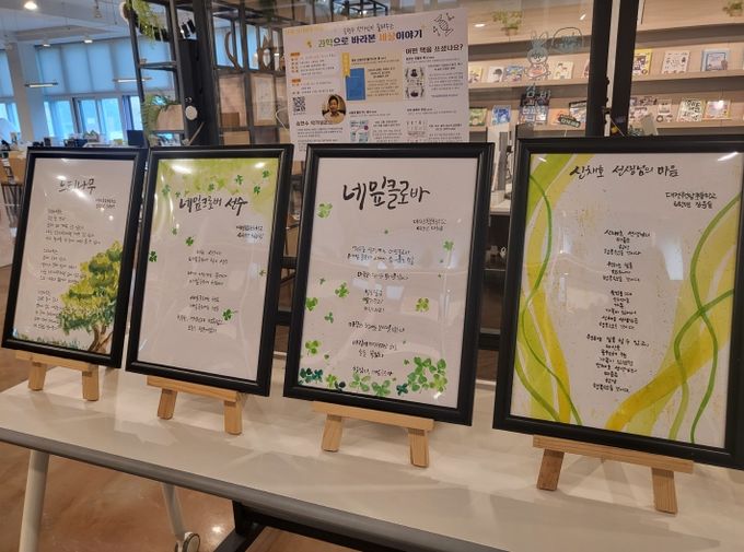 (아름다운교육신문) 대전서부교육지원청은 10월 10일(목)부터 21일(월)까지 대전학생교육문화원 3층 1216 해봄에서 2024학년도 사제동행 독서문학기행 참가자 41명의 시화 작품 전시회인 ‘詩-만나다. 반하다. 물들다.’ 시화전을 개최한다고 밝혔다.