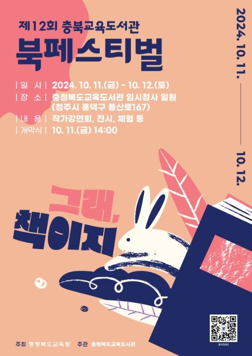이종수 교육도서관장은 “충북교육도서관 임시청사 시설을 활용하여 진행되는 이번 북 페스티벌이 책에 쉽게 접근하는 계기가 되길 희망하며, 책과 독서에 관심 있는 학생과 학부모, 교직원과 지역주민 여러분의 많은 참여 바란다”고 말했다.