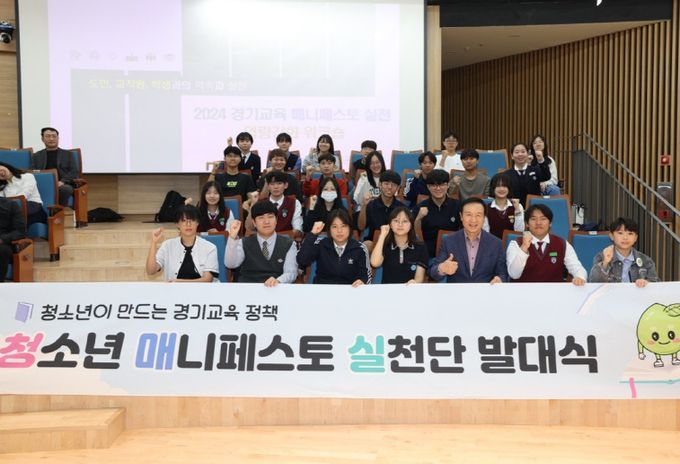 한편 오전에는 청소년 매니페스토 실천단(청매실) 3기로 선발된 청소년을 대상으로 청매실 발대식이 진행됐다. 실천단 학생들은 청소년의 눈으로 바라본 경기교육 정책을 이야기하며 적극적인 매니페스토 실천 활동을 다짐했다.