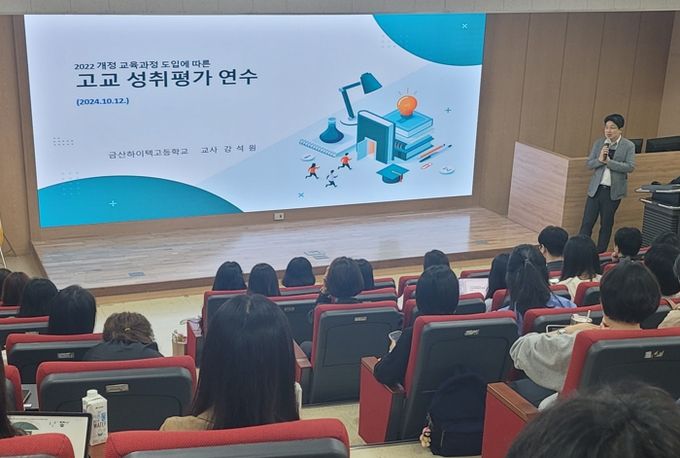 첫 번째 연수는 고교학점제가 전면 시행되는 2025학년도 고등학교 학생평가에 대한 교원들의 역량을 강화하기 위한 목적으로 실시했다. 고교 성취평가 연수에는 160여 명의 고등학교 교원이 참여해, 성취평가제의 이해와 실제 적용 방법을 학습했다.
