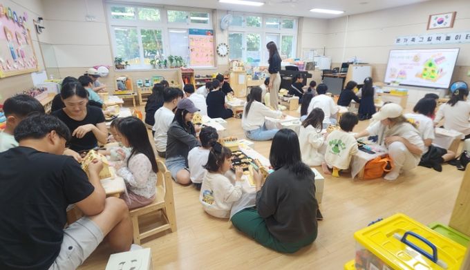 이번 연수는 "온가족 그림책놀이터(과자집 만들기)"를 주제로 유치원 으로 이루어졌으며 '도망쳐요, 과자삼총사' 동화를 감상하고 연계 활동으로 과자집 만들기 놀이가 진행됐다.