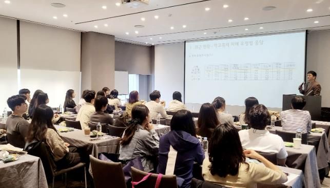 이번 연수는 △학교폭력예방의 이해 △분임토의(학생 및 학부모 상담, 교육활동침해 및 아동학대의 예방, 생활지도) △법률로 알아보는 교육활동보호 및 아동학대 △갈등조정(화해중재)의 이해의 주제로 교사들의 생활지도 역량을 강화하기 위한 목적으로 계획되었으며, 관내 초중고 교사 중 희망자를 받아 진행하였다.