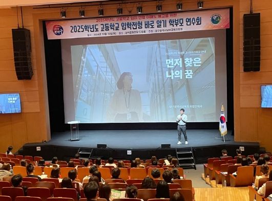 (아름다운교육신문) 대구남부교육지원청은 지난 10월 10일, 대덕문화전당 드림홀에서 관내 34개교에 재학 중인 중학교 3학년 학생 학부모 200여 명을 대상으로 ‘2025학년도 고등학교 입학전형 이해도 제고를 위한 연수회’를 개최했다.