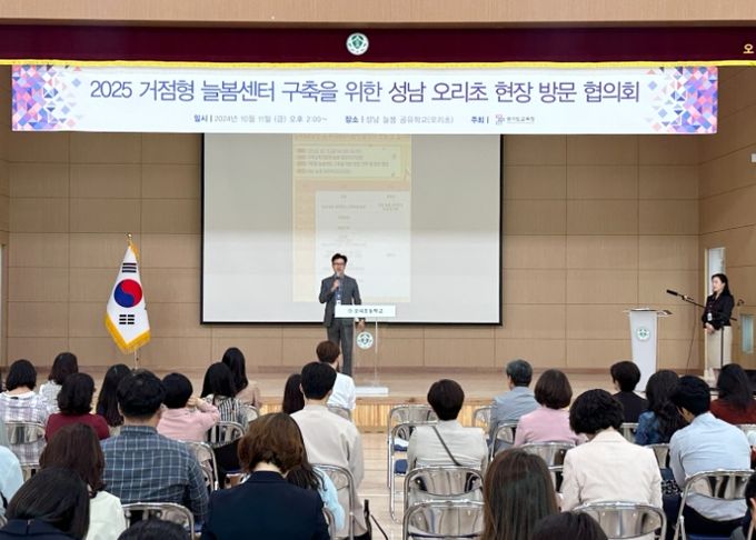 (아름다운교육신문) 성남교육지원청은 10월 11일 성남늘봄공유학교(오리초 소재)에서 2025년 거점형 늘봄학교 구축을 위한 협의회를 진행했다. 이번 협의회는 경기도교육청 및 25개 지역교육지원청 늘봄학교 업무 담당자 70여명이 참석했다.