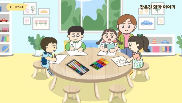 ‘세종의 화가 장욱진’ 온라인 제작물(애니메이션)은 세종시 전동면에 있는 장욱진 화가의 생가를 방문하고, 유아들에게 친숙한 장욱진 화가의 그림을 설명하는 내용으로 구성되어 있는데, 유아들이 작품을 감상하며 자신의 꿈을 찾고 펼쳐나간다는 주제를 담고 있다.