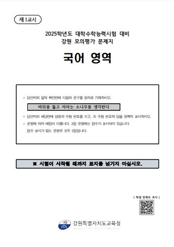 홍명표 미래학력담당관은 “이번 강원 모의평가 문제지를 통해 학생들이 수능 출제 경향을 파악하고 자신의 학습 수준을 점검하는 데 도움이 되기를 기대한다.”라고 말했다.