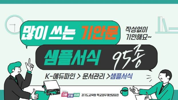 도교육청은 기안문 작성 시 비슷한 내용을 반복적으로 기안하며 발생하는 행정력 낭비를 줄이기 위해 자주 사용하는 기안문 예시서식(샘플서식)을 개발, 탑재했다. 이를 통해 학교에서는 필요한 기안문을 선택해 쉽게 기안할 수 있다.
