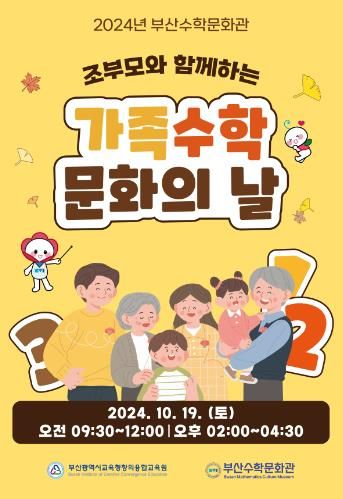 (아름다운교육신문) 부산광역시교육청창의융합교육원은 오는 19일 부산수학문화관에서 손자녀와 함께한 시민들을 대상으로 ‘조부모와 함께하는 가족 수학문화의 날’행사를 개최한다.
