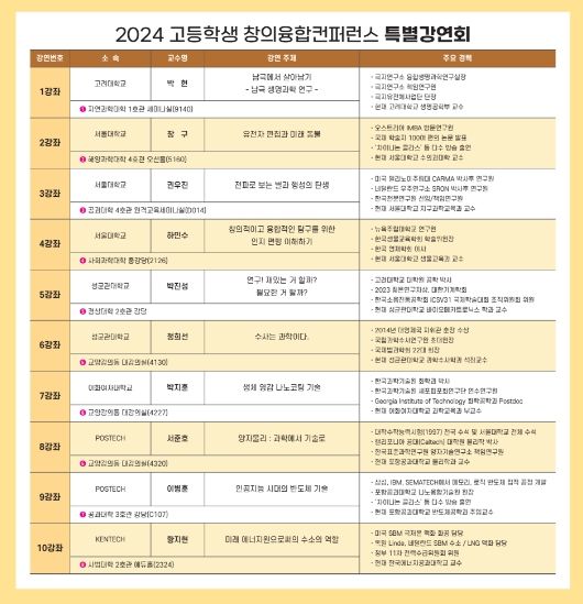 '고등학생 융합컨퍼런스'는 학생 스스로 탐구활동을 계획‧수행‧발표의 전과정을 수행함으로써 문제해결력과 과학적 소양을 갖춘 미래인재 육성을 목적으로 실시되는 창의융합교육프로그램으로, 오전 특별강연, 오후 소논문발표회로 나뉘어 진행된다.