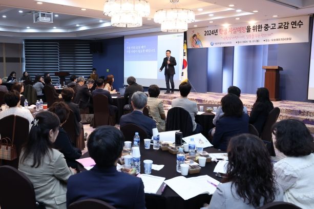 (아름다운교육신문) 세종특별자치시교육청은 10월 21일에 오송 에이치호텔에서 중‧고등학교 교감 50여 명을 대상으로 ‘학생 자살 예방을 위한 중‧고등 교감 심화 연수’와 ‘학교 안전사고 예방 연수’를 실시했다.