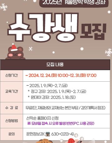 (아름다운교육신문) 속초교육문화관은 12월 24일부터 31일까지, 2025년 겨울방학 프로그램 수강생을 모집한다.