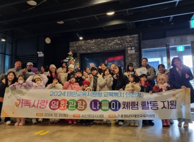(아름다운교육신문) 태안교육지원청에서는 12월 21일 교육복지 10가족 35명과 함께 따뜻한 가족의 사랑을 나누는 특별한 날로 서산 롯데시네마에서 “모아나 2” 영화를 관람하는 즐거운 나들이 체험을 진행했다.