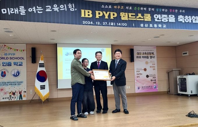 (아름다운교육신문) 제주도교육청 성산초등학교는 27일 IB PYP 월드스쿨 인증식을 개최했다.