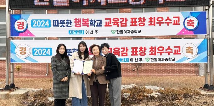 (아름다운교육신문) 한일여자중학교가‘2024 따뜻한 행복한 학교'부문에서 교육감 표창 최우수 학교로 선정되었다.