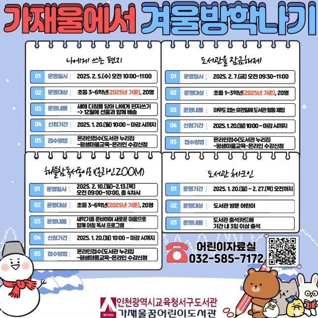 (아름다운교육신문) 인천광역시교육청서구도서관은 1, 2월 어린이들을 위한 ‘가재울에서 겨울 방학나기’를 운영한다.