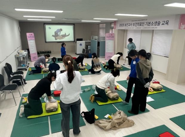 이번 교육은 보건교사의 심폐소생술 및 응급처치 능력 강화를 목표로, 학교 내에서 발생할 수 있는 응급상황에 즉각 대응할 수 있는 전문성을 높이기 위해 마련됐다.