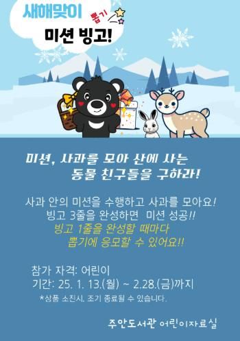 1월 13일부터 2월 28일까지 어린이 자료실에서 참여할 수 있으며 자세한 사항은 주안도서관 누리집이나 어린이자료실로 문의하면 된다.