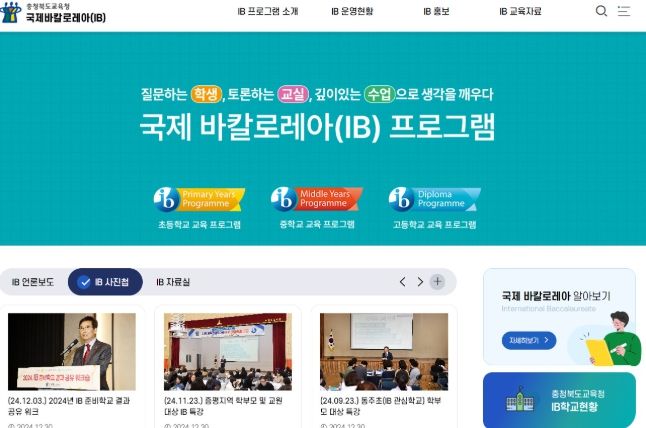 한편, 충북교육청은 2024학년도에 IB 준비학교 9개교를 운영했으며, 올해는 관심학교·후보학교 등 IB 프로그램 운영학교를 18개로 확대할 계획이다.