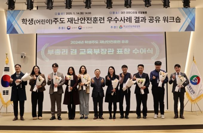 (아름다운교육신문) 대전시교육청은 14일 대전 라마다 호텔 로얄볼룸홀에서 교육부 및 시‧도교육청 주최로 개최된 '2024년도 학생 주도 재난안전훈련 우수 사례 공유 워크숍'에서 대전해든학교와 새누리유치원 재난안전담당자가 학생 주도 재난안전훈련 교육부 장관 표창을 수상했다고 밝혔다.