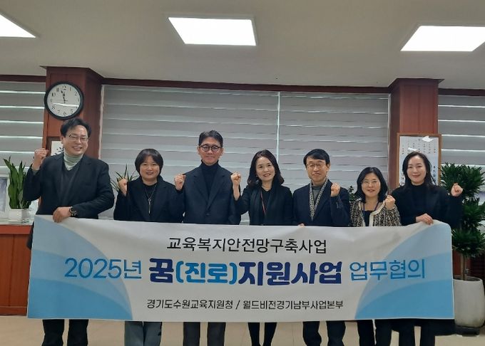(아름다운교육신문) 경기도수원교육지원청에서는 교육복지안전망구축의 일환으로 취약계층 학생들의 지원영역 확대를 위해 월드비전 경기남부사업본부(본부장 최성호)와 꿈(진로)지원사업 설명 및 협의회를 진행했다고 밝혔다.