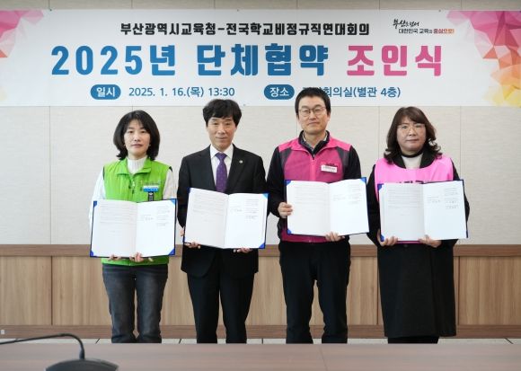 (아름다운교육신문) 부산교육청과 전국학교비정규직연대회의는 16일 오후 13시 30분 시교육청 별관 4층 전략회의실에서 2025년 단체협약을 체결했다