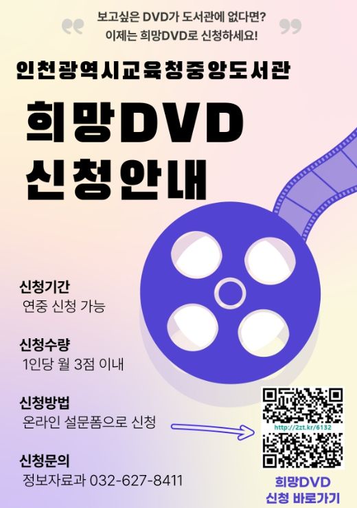 (아름다운교육신문) 인천광역시교육청중앙도서관은 2025년부터 이용자가 원하는 DVD를 직접 신청할 수 있는 ‘희망 DVD 신청제’를 도입한다.