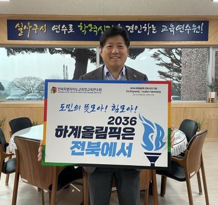 (아름다운교육신문) 민완성 전북특별자치도교육연수원장이 23일 2036 하계올림픽 전북 유치 기원 릴레이 챌린지에 동참했다.