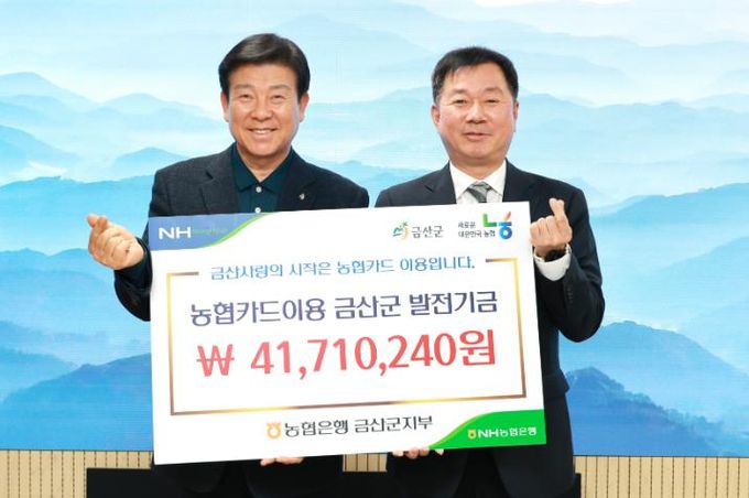 (아름다운교육신문) NH농협은행 금산군지부는 지난 26일 금산군에 금산사랑발전기금 4171만 원을 전달했다.