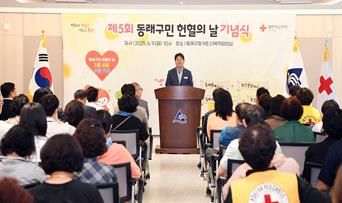 (아름다운교육신문) 부산 동래구는 지난 9일 생명나눔의 의미를 되새기고, 헌혈 유공자를 격려하기 위해 제5회 동래구민 헌혈의 날 기념식을 개최했다고 밝혔다.