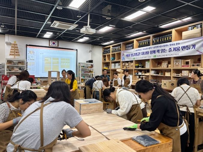 (아름다운교육신문) 경상북도구미교육지원청 기초학력거점지원센터는 10월 15일 경북 구미 지역 학습지원대상학생 학부모 및 초등 1학년 학부모 중 희망자 48명을 대상으로 목공예 학부모 연수를 실시했다.