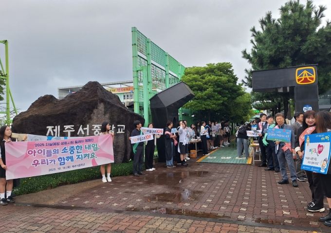 (아름다운교육신문) 제주도교육청 제주서중학교는 16일 오전 8시부터 8시 30분까지 아침 등교 시간을 활용하여, 제주특별자치도교육청과 함께하는 ‘2025 자살예방 생명사랑 릴레이 캠페인’을 진행했다.