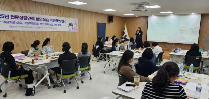 (아름다운교육신문) 대전시교육청 위(Wee)센터는 10월 17일부터 31일까지 7회에 걸쳐 관내 전문상담(교)사 및 위(Wee) 센터 전문상담인력을 대상으로 '2025년 전문상담인력 상담 실습 역량 강화 연수'를 진행한다.