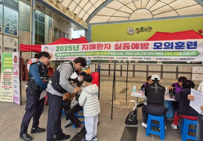 이번 훈련은 시장 내 가상 치매환자를 투입해 발견 주민이 안내 매뉴얼에 따라 신고하고 경찰에 인계하는 실제 생활형 훈련으로 진행됐다.