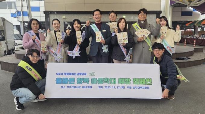 (아름다운교육신문) 경상북도성주교육지원청은 11월 27일 목요일 성주전통시장 및 인근 관공서·상가 밀집 지역에서 읍민을 대상으로 긍정양육 문화 확산을 위한 ‘아동학대 예방 거리 캠페인’을 실시했다.
