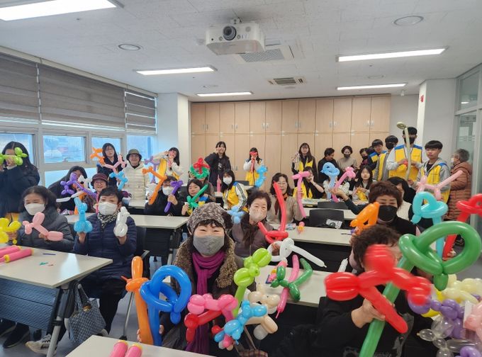 특히 풍선아트는 기본 매듭법부터 꽃·동물 모양 만들기까지 단계별로 진행되어 어르신들의 호응이 높았다.