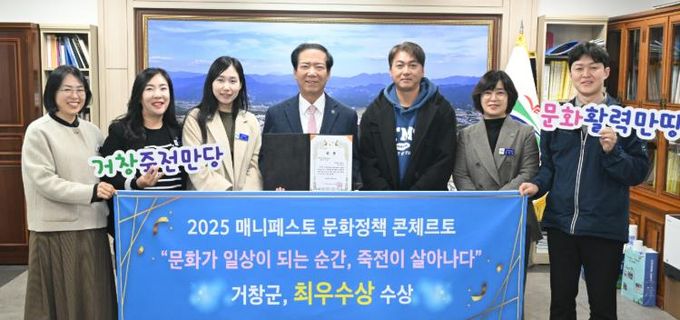 (아름다운교육신문) 거창군은 강원특별자치도 원주시 상지대학교에서 개최한 ‘2025 전국 기초단체장 매니페스토 문화정책 콘체르토(Concerto)’ 대회에서 문화기반 도시활력분야 ‘최우수상’을 수상했다고 26일 밝혔다.