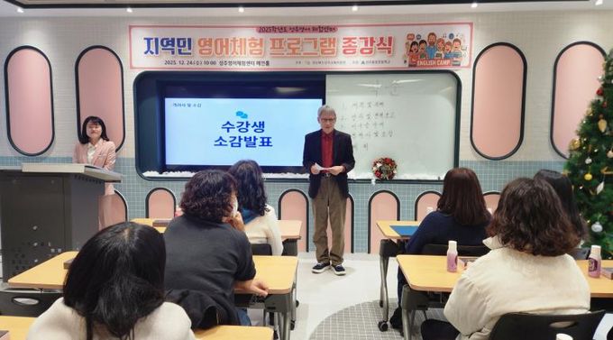 (아름다운교육신문) 경상북도성주교육지원청 산하 성주영어체험센터는 12월 24일 오전 10시, 성주영어체험센터 메인홀에서 2025학년도 지역민 영어 프로그램 종강식을 개최했다.