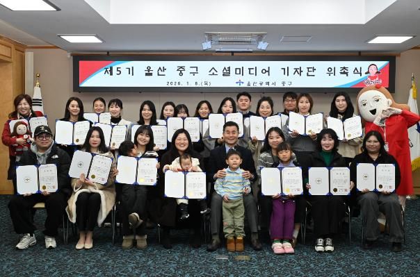 (아름다운교육신문) 울산 중구가 제5기 중구 소셜미디어 기자단을 새롭게 구성하고 지난 1월 8일 오후 6시 30분 중구청 중회의실에서 위촉식을 열었다.