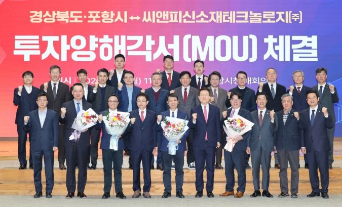 (아름다운교육신문) 포항시와 경상북도는 19일 포항시청 대회의실에서 씨앤피신소재테크놀로지㈜와 5,000억 원 규모의 투자양해각서(MOU)를 체결했다.